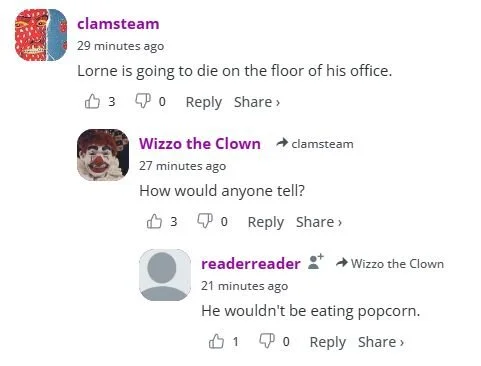 "He Wouldn't Be Eating Popcorn" October 26, 2025 The AV Club commenters can be a miserable bunch, but occasionally their flow pays off.