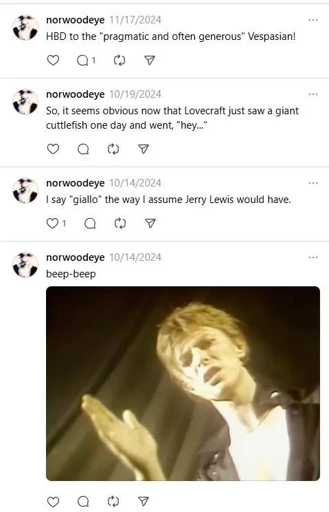 When I left Threads, which admittedly was one of the less invasive and more satisfying social media experiences, I took a reminder of a few of my favorite posts that were not my own artwork (and happened to take place within a very small window…I guess I was having a good month). The Bowie was silly, to be sure. But I’m a tad proud of the rest.